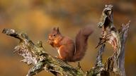 凯恩戈姆山脉中的欧亚红松鼠,苏格兰高地