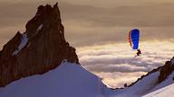 野外探险家亚历克斯·彼得森在胡德山南侧快速滑翔,俄勒冈