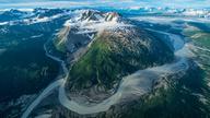 海恩斯章克申附近克鲁瓦尼国家公园中冰川和山脉的鸟瞰图,加拿大育空