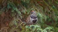 云杉树中的一只云杉松鸡,阿拉斯加德纳利国家公园