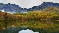 秋日景色倒映于镜池中,日本长野