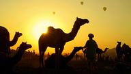 普什卡骆驼节上的骆驼与牧民,印度拉贾斯坦邦