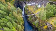温哥华岛麋鹿瀑布吊桥鸟瞰图,加拿大