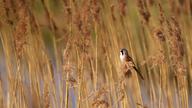 埃尔姆利国家自然保护区里的一只文须雀,英格兰肯特郡