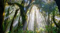 阳光穿透加拉霍奈国家公园中的森林,西班牙戈梅拉岛