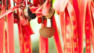 【今日七夕】Love locker on a red stripe hanging in a temple in Chengdu, China © Philippe LEJEANVRE/Getty Images