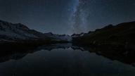 格里姆瑟尔山口Totesee山地湖中倒映出的星星,瑞士伯尔尼