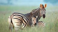 Rietvlei自然保护区内的布氏斑马母子,南非