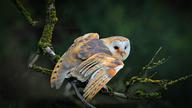 一只停在树枝上的仓鸮