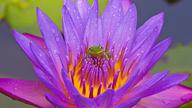 基西米湖中的绿色树蛙和紫色睡莲,佛罗里达州